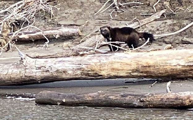 Wolverine are rare and listed as threatened in Oregon. The species is the largest member of the weasel family and resembles a small bear. Wolverine are widely distributed in Canada and Alaska, with smaller populations occurring in Washington, Idaho, Montana, Wyoming and Oregon, which is the southern edge of the current wolverine range in North America. They are strongly associated with snowpack and are most commonly found at high elevations. They can travel 30 miles a day; this individual is likely dispersing from Washington.